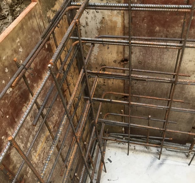Professional footing framing and rebar installation. Pads are hand dug to size and proper access sleeves through concrete footing for water drainage.