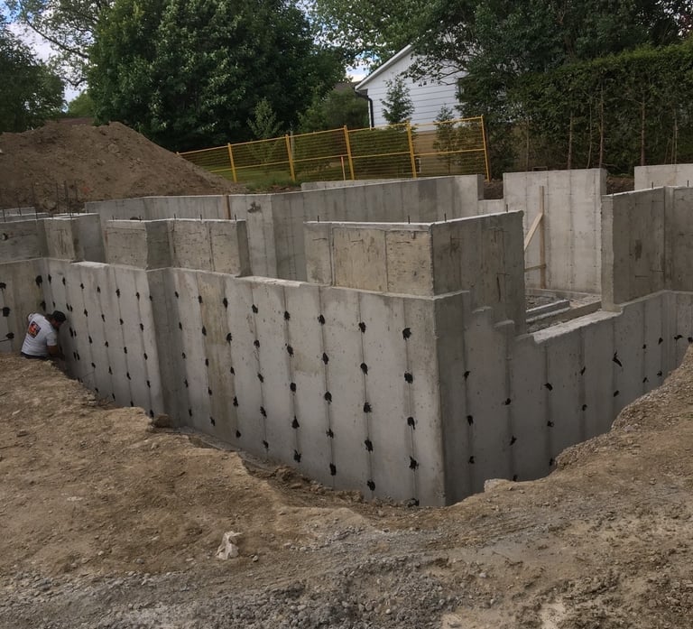 Expert concrete forming for residential foundations, ensuring quality and durability for your home. Building the strongest foundation for you and your family ground up.